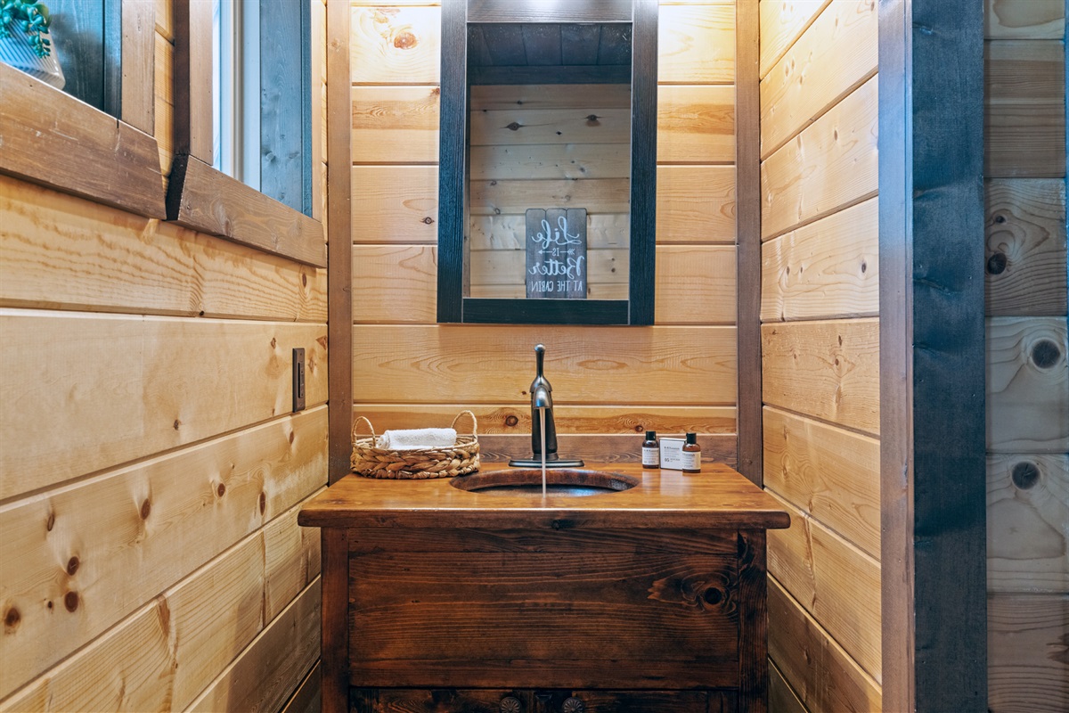 Indulge in ultimate convenience and luxury with our stunning ensuite bath featuring a dual sink vanity. 💦🛀 Designed with comfort in mind, our bath is the perfect space to relax and rejuvenate after a day of adventure in beautiful Hochatown and Broken Bow